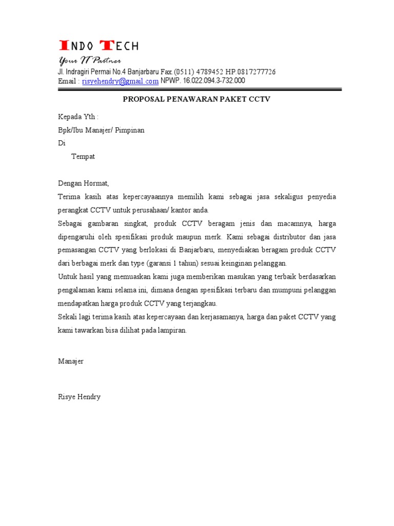 Contoh surat penawaran cctv perusahaan ataulfo contoh surat penawaran cctv perusahaan ataudes contoh surat penawaran cctv perusahaan ataul contoh surat penawaran. PROPOSAL PENAWARAN INSTALASI CCTV Kepada Yth. 15 contoh surat permintaan.