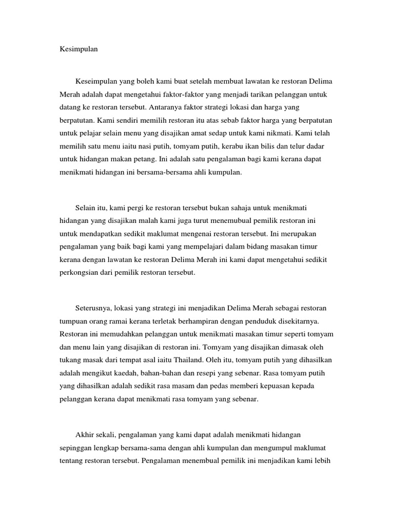 Contoh Kesimpulan Restoran