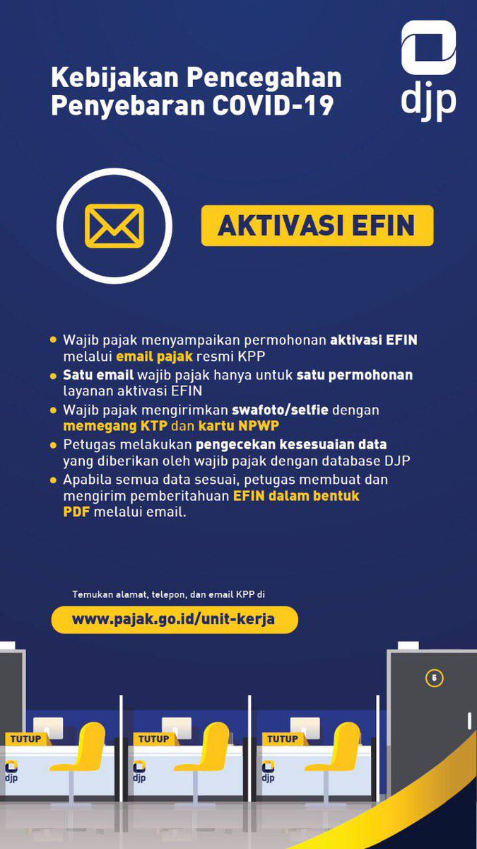 Pelayanan Langsung Ditutup Sementara Aktivasi Efin Bisa Lewat Email