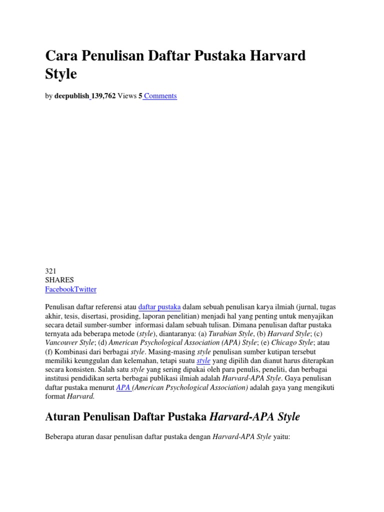 Contoh Daftar Pustaka Harvard Style Bagikan Contoh