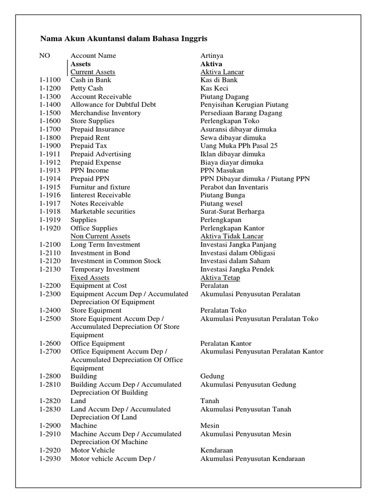 Nama Nama Akun Dalam Akuntansi Dan Bahasa Inggrisnya Terbaru 2017 Belajar Akuntansi